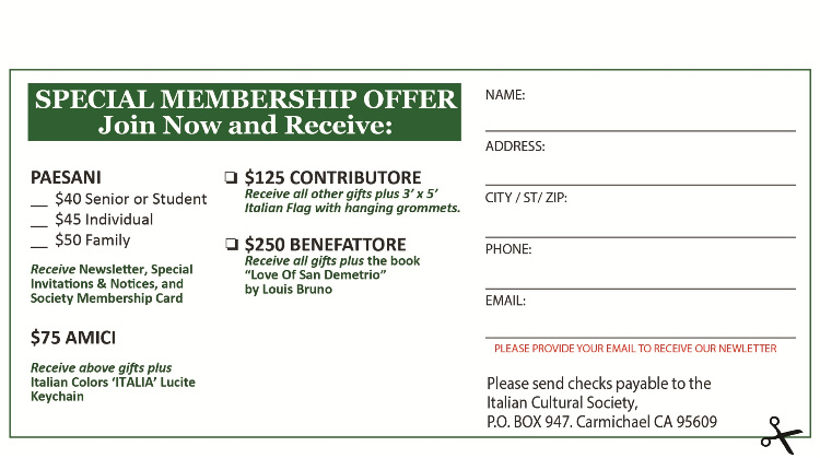 NOW is a great time to proudly represent your heritage by supporting the Italian Cultural Society